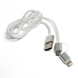 Назва: Кабель PowerPlant Quick Charge 2A 2-в-1 cotton USB 2.0 AM - Lightning/Micro 1м silver