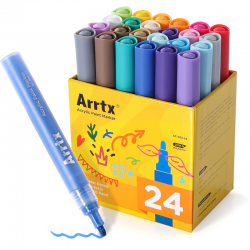 Акрилові маркери Arrtx, 24 кольори з чорнилами на водній основі, без запаху та досить світлостійкі для малювання на папері, на полотні, склі, кераміці, пластику, дереві і т.д.