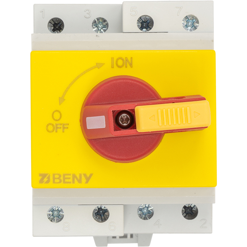 Перемикач постійного струму до 1200В / 32А з ручкою, що блокується, для безпечного використання та обслуговування.