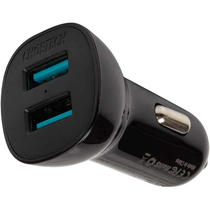 Компактний автомобільний зарядний пристрій з двома роз'ємами USB A, 36 Вт з функцією швидкої зарядки (QC3.0).