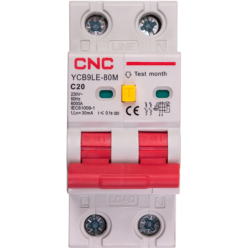 Автоматичний вимикач із захистом від надструмів, 2 полюси, 20A, клас C, 30mA, 6kA