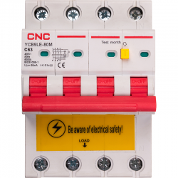 Автоматичний вимикач із захистом від надструмів, 4 полюси, 63A, клас C, 30mA, 6kA