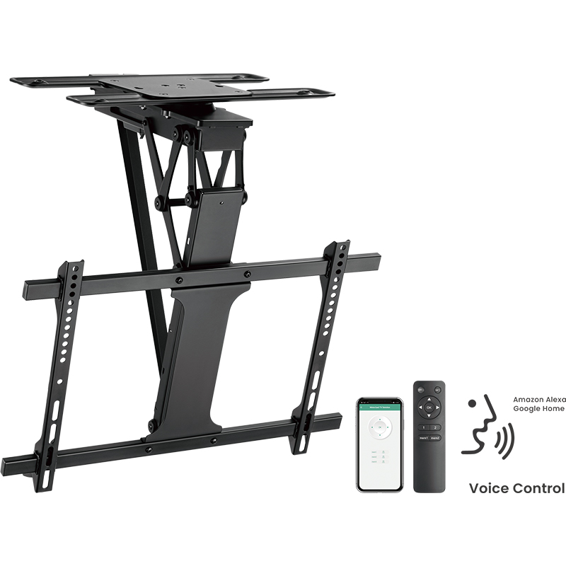 Особливості: Можливість повороту: для різних кутів огляду екрана. Регулювання рівня: дозволяє ідеально розташувати телевізор після підвішування. Система запобігання зіткненням: захищає від нещасних випадків і травм. Пульт дистанційного керування в комплекті: для легкого переміщення. Відкидна конструкція: дозволяє легко зберігати, звільняє простір та забезпечує безпеку на дорозі. Потужний двигун: більш стабільний, міцний і довговічний. Пульт дистанційного керування: пульт дистанційного керування за допомогою програми Tuya App. Розумне голосове керування: легко регулюйте положення телевізора за допомогою простої голосової команди.