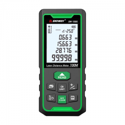 Лазерна лінійка Sndway SW-100G забезпечує вимірювання відстаней у діапазоні від 0,05 до 100 метрів, кутів нахилувід -90° до +90°, і реалізує функції віднімання та додавання, швидкого розрахунку площі й об'єму, а також непрямих вимірів на основі теореми Піфагора, приміром: значень висоти на основі виміряної відстані до основи та вершини, а також кутів.