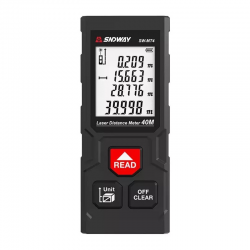 Лазерна рулетка Sndway SW-MT4 призначена для вимірювання відстаней в діапазоні від 0,05 до 40 метрів, оснащена функціями віднімання та складання, швидкого розрахунку площі та об'єму, а також непрямих вимірювань на підставі теореми Піфагора, наприклад: значень відстані до основи та вершини.