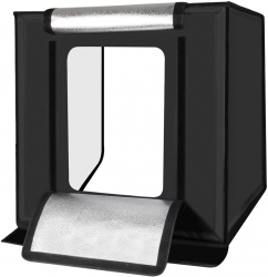 Якісні LED лампи гарантують високу якість фотографії і професійний ефект. Кольорова температура 5500К в поєднанні з сріблястою дзеркальною внутрішньою частиною фотобокса, забезпечують рівномірне освітлення, щоб звести до мінімуму тіні.