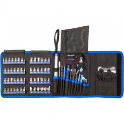 Це універсальний набір викруток, що складається з професійного набору прецизійних біт зі 120 предметів з ручкою електричної викрутки, що заряджається через порт USB Type-C, а також ручки викрутки з регульованою довжиною та інших інструментів для ремонту електроніки, все в портативному, міцному тканинному футлярі.