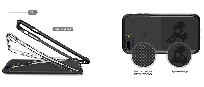 Приподнятые края чехлов Patchworks защищают основную камеру устройства и максимально оптимизированы для использования с защитным стеклом.