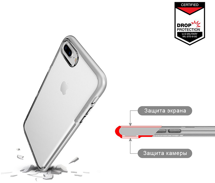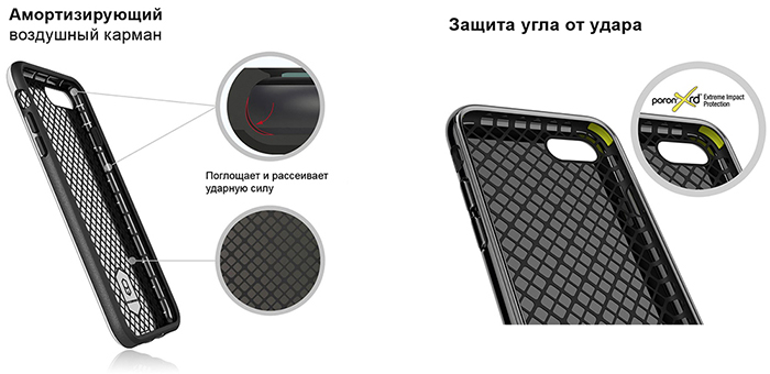 Воздушный карман для дисперсии энергии удара и технология защиты углов PORON XRD Extreme Impact absorber (USA) обеспечивают дополнительную защиту для самых уязвимых частей Вашего телефона.