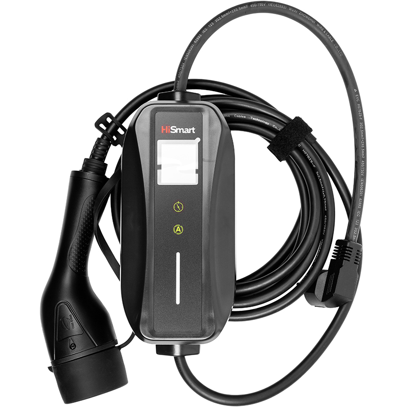 Портативний зарядний пристрій для електромобілів, з вилкою Type 2, 16А, 3.5kW, однофазний, зі світлодіодним екраном і 2 сенсорними кнопками, з кабелем 5м.