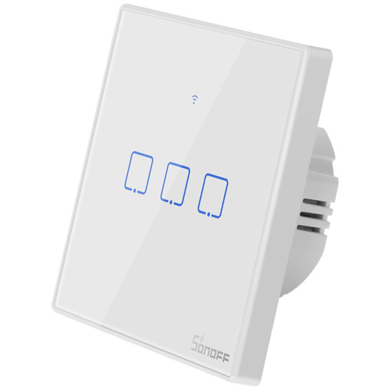 Розумний 3-канальний настінний сенсорний вимикач легко встановлюється замість звичайного настінного вимикача й не потребує рамки.