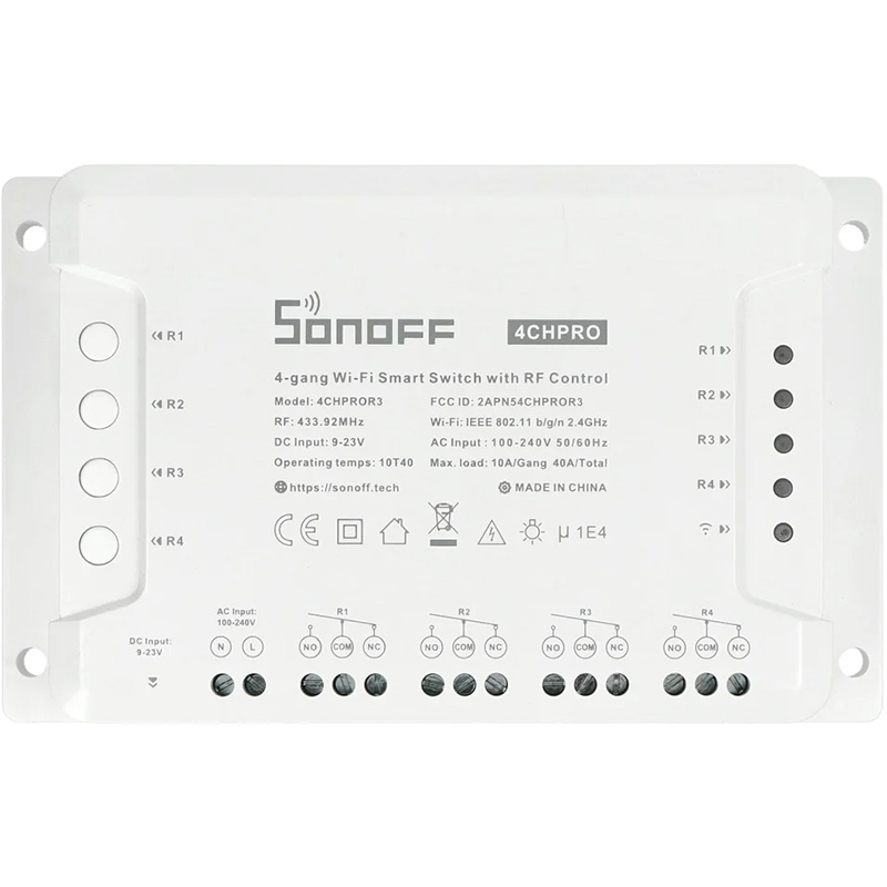 4-канальні інтелектуальні комутатори Wi-Fi, розроблені, щоб дати вам можливість інтегрувати інтелектуальне управління в ваш існуючий будинок, для створення розумного будинку. Кожен розумний вимикач має 4 групи, які можна використовувати для управління освітленням і іншою побутовою технікою одночасно в чотирьох областях вашого будинку. Sonoff 4CHPROR3 розроблений з додатковою функцією для управління RF. Ця функція спеціально адаптована для включення / виключення пристрою, підключеного до 4CHPROR3 через пульт дистанційного керування RM433.
