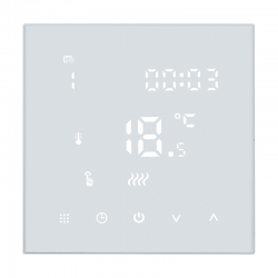 Бездротовий термостат для електричного або водяного опалення підлоги, програмований. Термостатом можна керувати голосом за допомогою Amazon Alexa або Google Assistant, підключених до вашої домашньої системи. Крім того, мобільний додаток (IOS та Android) дозволяє регулювати температуру, навіть коли вас немає вдома.